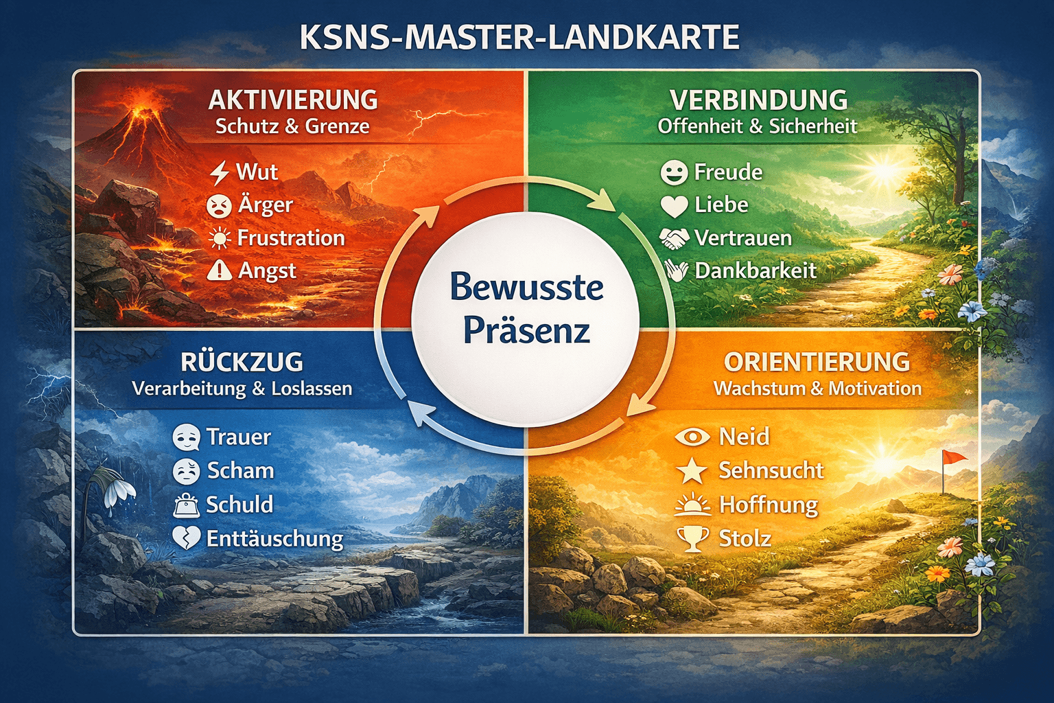 Die KSNS Emotionen-Matrix zeigt dir, wie Emotion, Nervensystem, Körper und Stimme zusammenhängen.